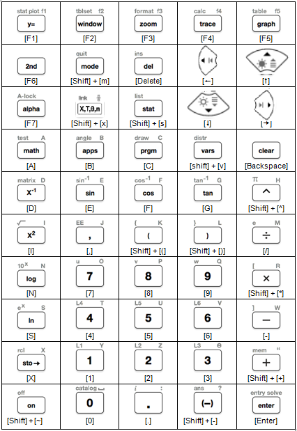 If you want to enter the "log" function on the emulator keypad, use the table below to find the computer key to press.
