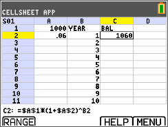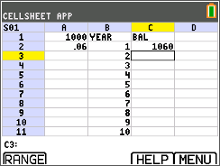 Le curseur étant positionné dans la cellule C2, appuyez sur PLAGE ^. |