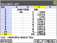 Appuyez sur la flèche haut pour vérifier que la formule se trouve toujours sur la ligne de saisie pour cette cellule. Remarque : Vous pouvez recopier la formule vers le bas de la colonne. Consultez l’aide CellSheet pour connaître les touches de raccourci des commandes Copier ` Sélect Plage ^ et Coller a. |