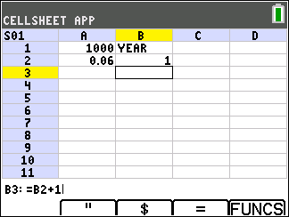 Entrez la première formule =B2+1. (Consultez les touches de raccourci à l’écran pour le signe = a.)