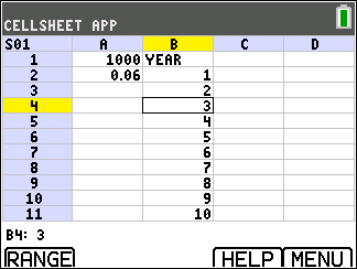 Appuyez sur † pour déplacer le curseur dans la cellule B4. |