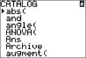 Druk op y N om de CATALOG weer te geven. Opmerking: Wanner een App voor taallokalisatie in gebruik is, staat de CHARACTER editor in de lijst na alle commando's die in het Engels blijven. |