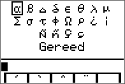 U kunt: Een speciaal teken selecteren: Druk op |, ~, †, of } om het vakje naar het speciale teken te verplaatsen dat u wilt gebruiken in een bericht of tekststring. Druk op Í om het teken op de bewerkingsregel te plaatsen. Druk op |, ~, †, of } om het vakje naar Klaar te verplaatsen. Druk op Í om de inhoud van de bewerkingsregel in het vorige scherm te plakken. -of- Een accent toevoegen aan een teken: Druk op de functietoets (^, _, `, a of b) onmiddellijk boven het accentteken om het te selecteren. De ALPHA-hoofdlettermodus is automatisch ingeschakeld. Om over te gaan op kleine letters drukt u op ƒ. Druk op de toets van het alfabetteken waarop u een accent wilt plaatsen, bijvoorbeeld [A] (boven »). Het teken met het accent wordt weergegeven in de bewerkingsregel. Druk op |, ~, †, of } om het vakje naar Klaar te verplaatsen. Druk op Í om de inhoud van de bewerkingsregel in het vorige scherm te plakken. |