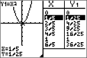 | • | De modus GRAFIEK‑TABEL geeft de huidige grafiek in de linkerhelft van het scherm weer en het tabelscherm in de rechterhelft van het scherm. |