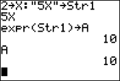 Met de functie uitdr( kunt u een tekenstring opgeslagen in string omzetten in een uitdrukking en deze laten uitvoeren. string kan een string of een stringvariabele.