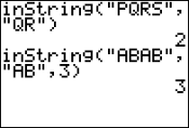 De functie inString( geeft als resultaat de positie in string van het eerste teken van substring. string kan een string of een stringvariabele. start is een optionele teken-positie waar het zoeken moet beginnen; de standaardwaarde is 1.