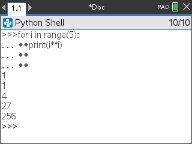Während einer Python-Sitzung können Fehler- und andere Informationsmeldungen angezeigt werden. Wenn bei der Ausführung eines Programms ein Fehler in der Shell angezeigt wird, wird eine Programmzeilennummer angezeigt. Drücken Sie / b und wählen Sie Zum Python-Editor gehen. Drücken Sie im Editor b und wählen Sie dann Bearbeiten > Gehe zu Zeile. Geben Sie die Zeilennummer ein und drücken Sie -. Der Cursor wird auf dem ersten Zeichen der Zeile angezeigt, in der der Fehler aufgetreten ist.