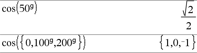 En modo de ángulo en Radianes: Nota: Para forzar un resultado aproximado, Dispositivo portátil: Presione / ·.