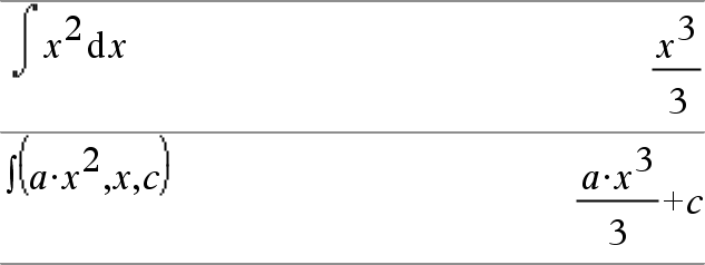 ‰(Expr1, Var[, Baja, Alta]) Þ expresión ‰(Expr1, Var[, Constante]) Þ expresión Entrega la integral de Expr1 con respecto de la variable Var de Baja a Alta. Nota: Vea también Plantilla de integral definida o indefinida, aquí. Nota: Usted puede insertar esta función desde el teclado al escribir integral(...). |
