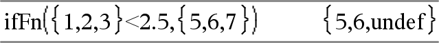 ifFn(BooleanExpr,Value_If_true [,Value_If_false [,Value_If_unknown]]) ⇒ expresión, lista, o matriz Evalúa la expresión booleana BooleanExpr (o cada elemento de BooleanExpr ) y genera un resultado en base a las reglas siguientes: