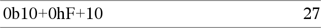 0b binaariluku Määrittää binaari- (Ob) tai heksadesimaaliluvun (Oh). Syöttääksesi binaari- tai heksadesimaaliluvun sinun on syötettävä etuliite 0b tai 0h riippumatta kantalukutilasta. Ilman etuliitettä lukua käsitellään desimaalilukuna (kantaluku 10). Tulokset näytetään kantalukutilan mukaisesti. |