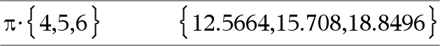 Lista1RÞlista Matriisi1RÞmatriisi Tämän funktion avulla voit määrittää radiaanikulman ollessasi aste- tai graadikulmatilassa. Kun laskin on astekulmatilassa, kertoo argumentin arvolla 180/p. Radiaanikulmatilassa antaa vastauksena argumentin muuttumattomana. Kun laskin on graadikulmatilassa, kertoo argumentin arvolla 200/p. Vinkki: Käytä komentoa R, jos haluat pakottaa funktion määritelmän yksiköksi radiaanit riippumatta tilasta, joka on käytössä funktion käytön aikana. Huomaa: Voit syöttää tämän symbolin tietokoneen näppäimistöltä kirjoittamalla @r. |
