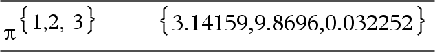 10^(neliömatriisi1)Þneliömatriisi Laskee luvun 10 korotettuna neliömatriisi1:n potenssiin. Tämä ei ole sama kuin kunkin elementin 10-potenssiin korottamisen laskeminen. Laskentamenetelmä on kuvattu kohdassa cos(). neliömatriisi1:n on oltava diagonalisoitavissa. Vastaus sisältää aina liukulukuja. |
