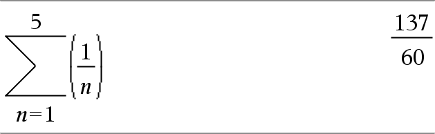 G(Laus1, Muutt, Matala, Korkea)Þlauseke Huomaa: Voit syöttää tämän funktion näppäimistöltä kirjoittamalla sumSeq(...). Sieventää Laus1:n jokaisen muuttujan Muutt arvon suhteen väliltä Matala - Korkea ja laskee vastausten summan. Huomaa: Katso myös Summamalli, täältä. |