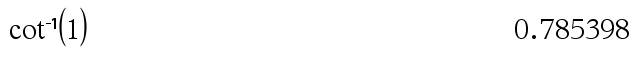 cot/(Arvo1)Þarvo cot/(Lista1)Þlista Laskee kulman, jonka kotangentti on Arvo1, tai määrittää listan, joka sisältää Lista1:n kunkin elementin käänteiskotangentit. Huomaa: Vastaus lasketaan aste-, graadi- tai radiaanikulmana käytössä olevan kulmatila-asetuksen mukaisesti. Huomaa: Voit syöttää tämän funktion näppäimistöltä kirjoittamalla arccot(...). |