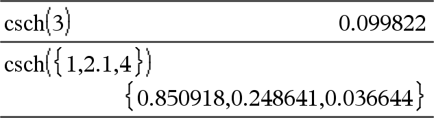 csch(Arvo1) Þ arvo csch(Lista1) Þ lista