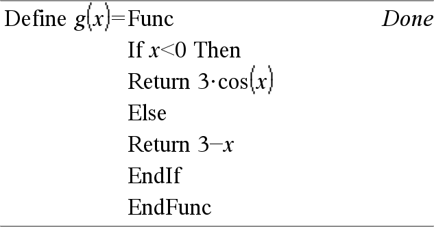 Func Malli käyttäjän määrittämän funktion luomista varten. Lohko voi olla yksi lauseke tai sarja lausekkeita, jotka on erotettu toisistaan kaksoispisteellä (:), tai sarja eri riveillä olevia lausekkeita. Funktio voi käyttää Return-ohjetta tietyn vastauksen laskemiseen. Huomaa esimerkkiä syöttäessäsi: Ohjeet monirivisten ohjelmien ja funktion määritysten syöttämisestä löytyvät tuotteen ohjekirjan Laskin-osiosta. |