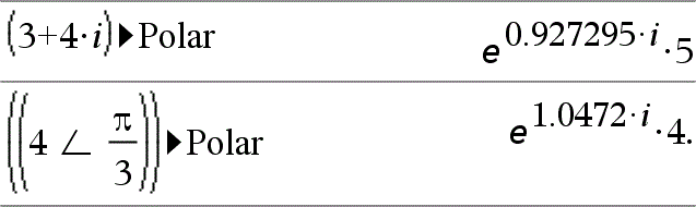 kompleksiArvo 4Polaarinen Näyttää kompleksiVektorin polaarisessa muodossa.