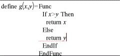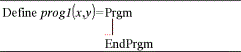 | 1. | Kirjoita Laskin-sovelluksen syöteriville Define prog1(x,y)=. Älä paina vielä Enter-painiketta. |