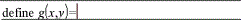 | 1. | Kirjoita Laskin-sovelluksen syöteriville Define g(x,y)=. Älä paina vielä Enter-painiketta. |
