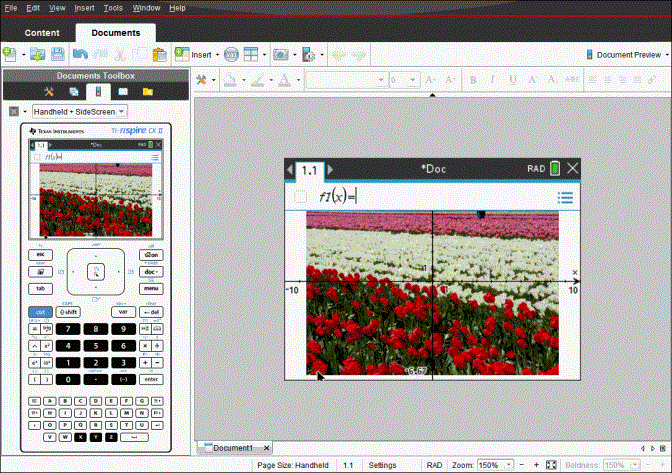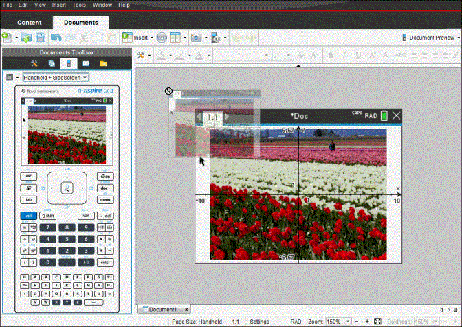 Käytä Asiakirjat-työtilassa DragScreen -toimintoa, kun haluat kaapata emulaattorin näytön tai sivunäytön silloin, kun TI-SmartView™ -emulaattori on aktivoitu.