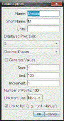 Voit nimetä sarakkeita ja määrittää desimaalipisteet sekä käytettävän tarkkuuden.