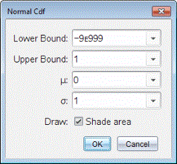 | 3. | Kirjoita kuvaajan parametrit Normaali Cdf -ohjattuun toimintoon. |