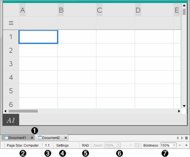 Sivukoko. Näyttää asiakirjan sivukoon Kämmenlaite- tai Tietokone-sivukoossa. Voit käyttää TI-Nspire™:n Tiedosto-valikkoa asiakirjan sivukoon muuttamiseen. |