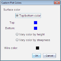Voit määrittää eri värit kuvaajan ylä- ja alapinnalle tai voit valita kuvaajan automaattisen värityksen korkeuden tai jyrkkyyden perusteella. Voit asettaa myös verkon värin.