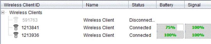 Kun olet määrittänyt verkon, kaikki lisäämäsi sovittimet näkyvät TI-Nspire™-verkkosovittimen ikkunassa. Kun langaton sovitin on ladattu ja yhdistetty päällä olevaan TI-Nspire™-kämmenlaitteeseen, TI-Nspire™-verkkohallinta näyttää tilan yhdistettynä. Langattoman laitteen tunnistaminen ja sen kytketyn tilan näyttäminen voi kestää enintään 30 sekuntia. Tilaikkunassa näkyvät myös akun tila ja signaalin voimakkuus.