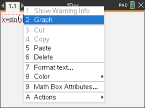 Voit piirtää funktion tai relaation suoraan sen pikavalikosta. Tämä toiminto on saatavana monille funktioille ja relaatioille Muistiinpanosovelluksessa, Luonnossivulla ja Laskinsivulla.