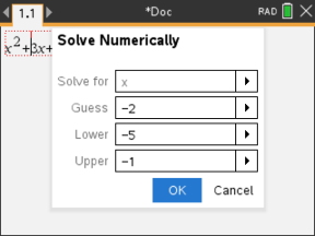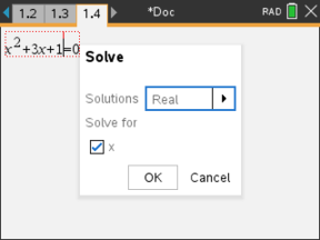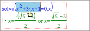 | 7. | Tutki edelleen vetämällä kohdistin matematiikkaruudun yli ja valitsemalla x2+3·x+1. Älä sisällytä valintaan osiota =0. |