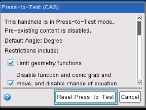 | 3. | Tyhjennä tiedot napsauttamalla Resetoi Press-to-Test -tila. – tai – Valitse Peruuta sulkeaksesi ikkunan ilman, että tyhjennät tiedot. |