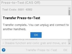 Kun siirto on valmis, vastaanottava kämmenlaite käynnistyy uudestaan Press-to-Test-tilassa ja lähettävällä kämmenlaitteella näkyy vahvistusviesti.