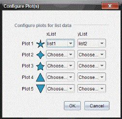 | 3. | Napsauta kuvion vieressä olevaan alaspäin osoittavaa nuolta valitsemaan, mikä lista esitetään (lista 1, lista 2 jne.) x-listalle ja y-listalle. |