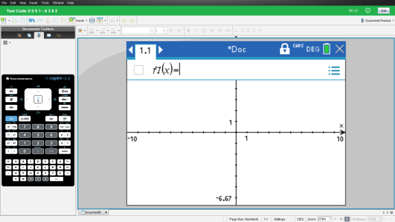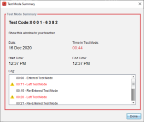 TI-Nspire™ CX Student Software on suunniteltu pitämään käyttäjä testitilassa ilman pääsyä muihin sovelluksiin testin keston ajan. Jos kohdennus siirtyy pois ohjelmistosta, otsikkopalkki muuttuu punaiseksi.