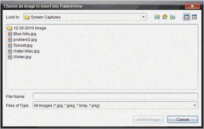 Le immagini possono essere aggiunte a documenti PublishView™ come oggetti PublishView™ oppure possono essere inserite in applicazioni TI-Nspire™ che supportano immagini. I tipi di file supportati sono .bmp, .jpg, .png.