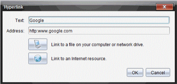 | 5. | Kopieer de URL en plak deze in het veld Adres in het dialoogvenster Hyperlink. |