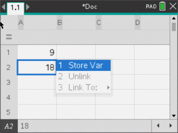 U kunt de waarde van een bestaande variabele controleren door de naam ervan in te voeren op de invoerregel van de Rekenmachine. Wanneer u de naam van een opgeslagen variabele typt, verschijnt deze vetgedrukt.