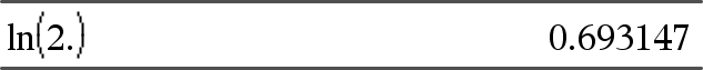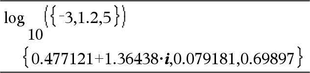 ln(Verdi1)Þverdi ln(Liste1)Þliste Returnerer argumentets naturlige logaritme. For en liste, returneres elementenes naturlige logaritmer. |