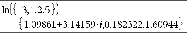 ln(kvadratMatrise)ÞkvadratMatrise Returnerer matrisens naturlige logaritme av kvadratMatrise1. Dette er ikke det samme som å beregne naturlig logaritme av hvert element. For mer informasjon om beregningsmetode, se etter under cos() kvadratMatrise1 må kunne diagonaliseres. Resultatet inneholder alltid flytende desimaltall. |