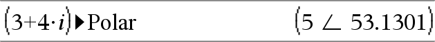 kompleksVerdi kan ha en hvilken som helst kompleks form. Men hvis du legger inn reiθ, forårsaker dette feil når vinkelmodus er grader. Merk: Du må bruke parentes for å legge inn polar (r∠θ). |