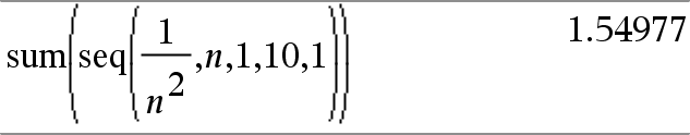 seq(Uttr, Var, Lav, Høy(, Trinn))Þliste Øker Var fra Lav til Høy med trinn på Intervall, behandler Uttr og returnerer resultatene som en liste. Det opprinnelige innholdet i Var er fremdeles der etter at Grunnverdien for Intervall = 1.