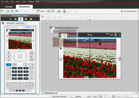 I dokumentarbeidsområdet, bruk DragScreen-funksjonen for å ta skjermdump av emulatorskjermen eller sideskjermen når TI-SmartView™-emulator er aktiv.