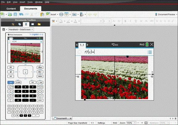 Hvis valgt visning er Grafregner + Sideskjerm, vises det gjeldende dokumentet i emulatoren og sideskjermen.