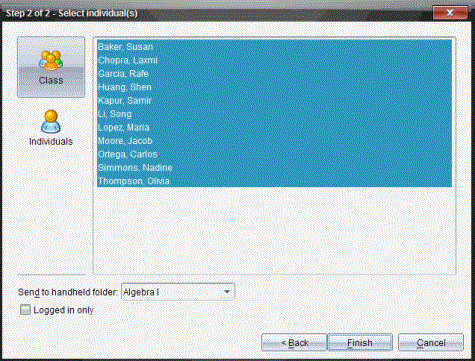 Hvis du hadde valgt noen elever i klasserom-feltet, vil de allerede være valgt i programmet