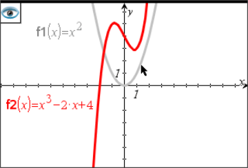 | 2. | Klikk på et objekt for å endre objektets vis/skjul-status. Du kan skjule grafer, geometriske objekter, tekst, etiketter, målinger og individuelle endeverdier for akser. |