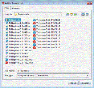 Dialogboksen Velg OS-fil for grafregner åpnes.