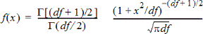 Beregner funksjonen for sannsynlighetstetthet (pdf) for t-fordelingen ved en spesifisert x-verdi. df (frihetsgrader) må være > 0. Funksjonen for sannsynlighetstetthet (pdf) er: