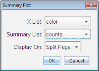 Oppsummeringsplottet viser listenavnene langs aksene og et symbol for oppsummeringsplott nederst til venstre i diagramvinduet.
